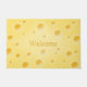 This is a portrait of a beautiful creamy Swiss Cheese with many holes or "eyes." Feel free to customise this doormat with your own greeting such as your family name. language. This doormat was designed to be able to fit a longer versions of "Welcome" in other languages such as German.