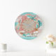 Beautiful Teal and Coral Seashell and Beach Design Large Clock