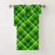 A set of bath towels featuring a beautiful, vibrant, tree green plaid pattern design.
