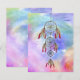 Beautiful trendy whimsical shining effects dream-catcher feathers ribbons, glowing stars nebula over watercolours, pink blue violet, green, white colours image print