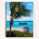 Spiral notebook with a scenic photograph. A clear blue ocean with a white sandy beach. A palm tree swaying in the wind.