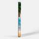 A beautiful iPhone 14 case featuring a painting of a tropical beach scene highlighting beautiful ocean waters, palm trees, flowers and amazing golden light from the sun. If you need assistance with personalisation, or additional items with a custom design, feel free to contact me using the message button.
