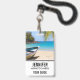 Beautiful Tropical Beach with a Rowboat ID Badge
