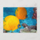 These pretty tropical fish are colourful with hues of yellow, orange, and blue. They swim among the coral in the beautiful turquoise waters of the ocean, among the colourful coral.