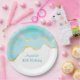 Beautiful Tropical Green Blue with Gold Border Paper Plate