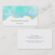 Business card with a vibrant summery design. Turquoise / aqua green watercolor image with a wavy faux gold border. Elegant and lovely.