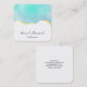 Business cards with a vibrant summery design. Turquoise / aqua green watercolor image with a wavy faux gold border. Elegant and lovely.