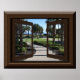 This poster features a beautiful tropical pathway through an open window.