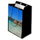 Gift bag with a photograph of a turquoise blue ocean beach with big rocks scattered along the coast. Bright and sunny tropical locale.