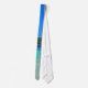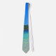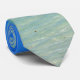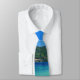 A tie with a photograph of a turquoise blue ocean beach with a horizon of green trees in the background.. Bright and sunny tropical locale.