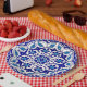 Those delicate and beautifully symmetrical vintage florals on a backdrop of pretty damask and deep blues are colourful and charming enough to grace any table, bar or kitchen top in your home.