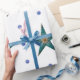Beautiful Turquoise Holiday Star on White Wrapping Paper