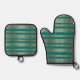 Beautiful, turquoise , turquoise with gold, lace , oven mitt & pot holder set