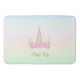 Modern Bath Mat with beautiful unicorn, flowers and stars on multicolored pastel shades background.