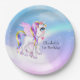 Beautiful Unicorn with Rainbow Mane Birthday Paper Plate