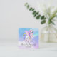 Business cards with an image of a unicorn with big blue eyes, pink wings and a rainbow mane and tail. Kawaii cute.