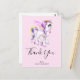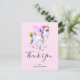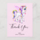 Thank you postcard with an image of a unicorn with big blue eyes, pink wings and a rainbow mane and tail. Kawaii cute.