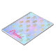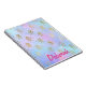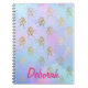 A beautiful unicorn theme, this notebook features a pretty blue and pink background with a golden unicorn pattern. At the bottom centre of your notebook is your name customised in pink cursive font. Personalise yours today!