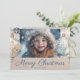 A beautiful Christmas card featuring blue and beige vintage ornament graphics. Add your own photo.