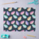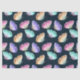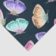 Tissue paper with a beautiful pattern. Watercolor butterflies, painted in pastel colours including pink, purple, blue, yellow and green. Dark blue watercolor background.