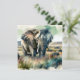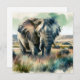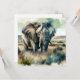 A blank card with an African savanna elephant in African or Asia walking in the meadows. Pretty ai illustration done in a watercolor style.
