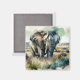 Magnet with an African savanna elephant in African or Asia walking in the meadows. Pretty ai illustration done in a watercolor style.