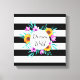 Trendy wrapped canvas design with floral watercolor wreath on black & white striped background. Customise the quote by choosing from many wonderful fonts.