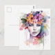 Beautiful Watercolor Girl with Flowers in Her Hair Postcard
