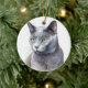 BEAUTIFUL WATERCOLOR RUSSIAN BLUE CAT FACE CERAMIC TREE DECORATION