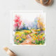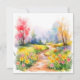 Watercolor path with vibrant flowers and trees.