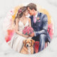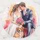 Beautiful Wedding Couple Kissing with a funny cute little dog.
