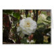 Beautiful white camellia flower set against a dark green foliage background. Send this to the gardener in your life.