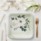 Beautiful botanical wedding paper plate featuring pretty flowers with romantic dark green leaves .