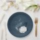 Beautiful white flowers & navy leaves paper plate