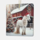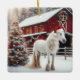 Beautiful White Horses, Christmas Tree and Barn Ceramic Ornament