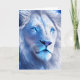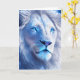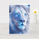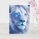 Blank card. Beautiful ai art depicting a white mystical lion with blue eyes. Gorgeous fantasy art. Surreal lion.