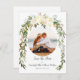 Invite your guests to a beautiful, white rose floral wedding. Bouquet floral at top features watercolor, vanilla, white roses with hints of yellow, pink and peach including the greenery that drapes each side. Templates provided for you.