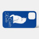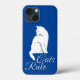 Phone case in a silhouette of a beautiful, long haired, sitting cat in white, with the caption "Cats Rule", with customisable background colour