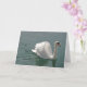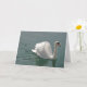 A pretty, white, proud swan swimming in grey water and colly reflecting. The greeting card is customisable with your birthday or Mother's Day wishes.