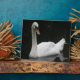 This awesome plaque features a photograph of a beautiful white swan. The swan is a male mute swan, you can tell it is male by the black bump on the beak. The swan is gliding gracefully across the water on a calm lake.