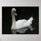 This poster features a photograph of a beautiful white swan. The swan is a male mute swan, you can tell it is male by the black bump on the beak. The swan is gliding gracefully across the water on a calm lake.