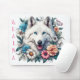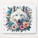 Personalised Beautiful White Wolf with Flowers Mouse Pad