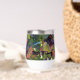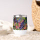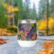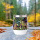 A stunning wine tumbler adorned with harvest grapes and autumn foliage—a perfect way to enjoy your wine.