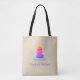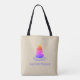 Elegant beige bag with beautiful wishing stones in multicolored shades over three concentric circles and personalised text "Sacred Stones".