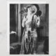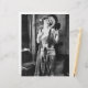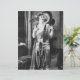 Great old photo of beautiful woman in outrageous 1920s flapper style dress, looking in mirror. Awesome period style outfit with hat and feathers. Vintage photograph taken in 1920s. Photographer unknown.