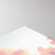 Beautiful woman meditating on a beach of white sand and shiny sea glass. Pink and blue fluffy clouds and pale blue water.