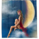 beautiful woman night fairy on moon, in sky, in clouds. In red dress. Illustration