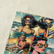 Pretty ai generated image of a pretty lady on the beach wearing sunglasses with an ocean beach background comic book style pop art.