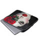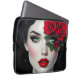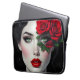 Tablet case with a beautiful black and white illustration of a pretty woman with a red rose and red lipstick.