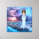 Beautiful Women Standing on Ocean Rock Canvas Print